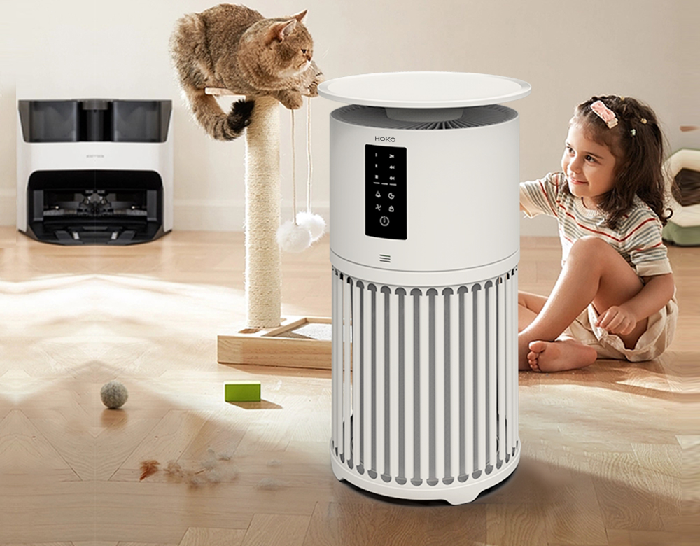 HOKO Pet Air Purifier: HEPA filtration, odor absorption, quiet operation, smart sensors, and stylish design for cleaner air.
